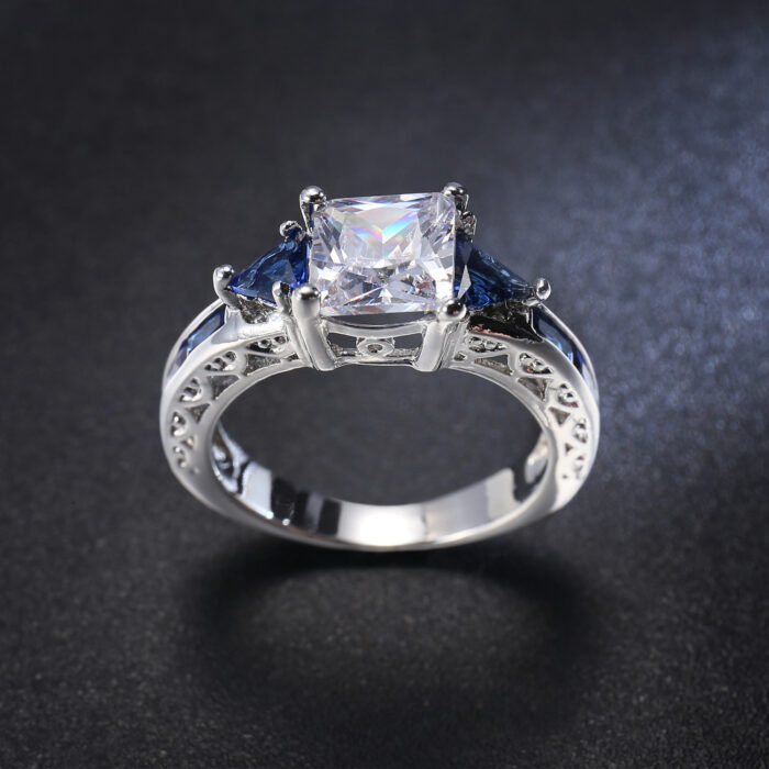 Material copper style natural Brand other shape geometry processing technology other Applicable gifts occasions Other Packaging Independent packaging Processing customization Yes Style women’s mosaic material other Color white gold white + sapphire blue Size 5, 6, 6th, 8th, 9th, 10th, 11th